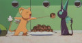 小可迫不及待的想先開動,斯比則在遲疑中。